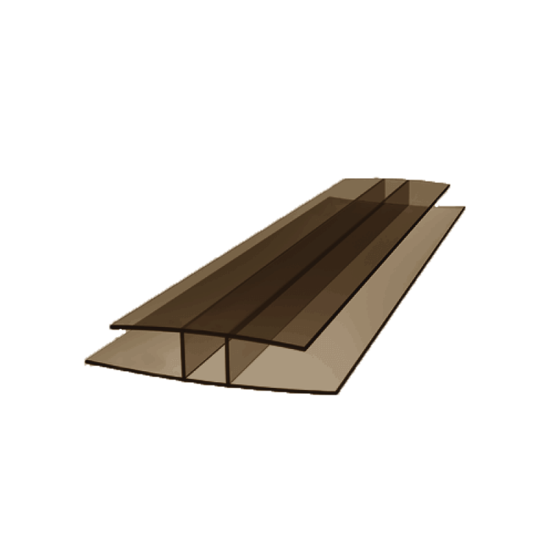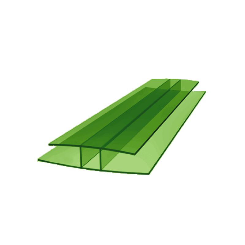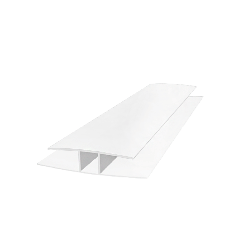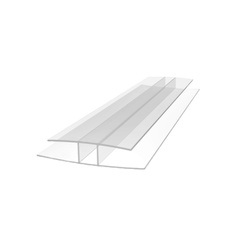 H-profil łączący to solidne, a jednocześnie ekonomiczne i łatwe w montażu rozwiązanie do łączenia płyt poliwęglanu komorowego. Profile te są zabezpieczone przed promieniowaniem słonecznym UV. Mogą być gięte razem z płytami do minimalnego dopuszczalnego promienia gięcia płyt.
