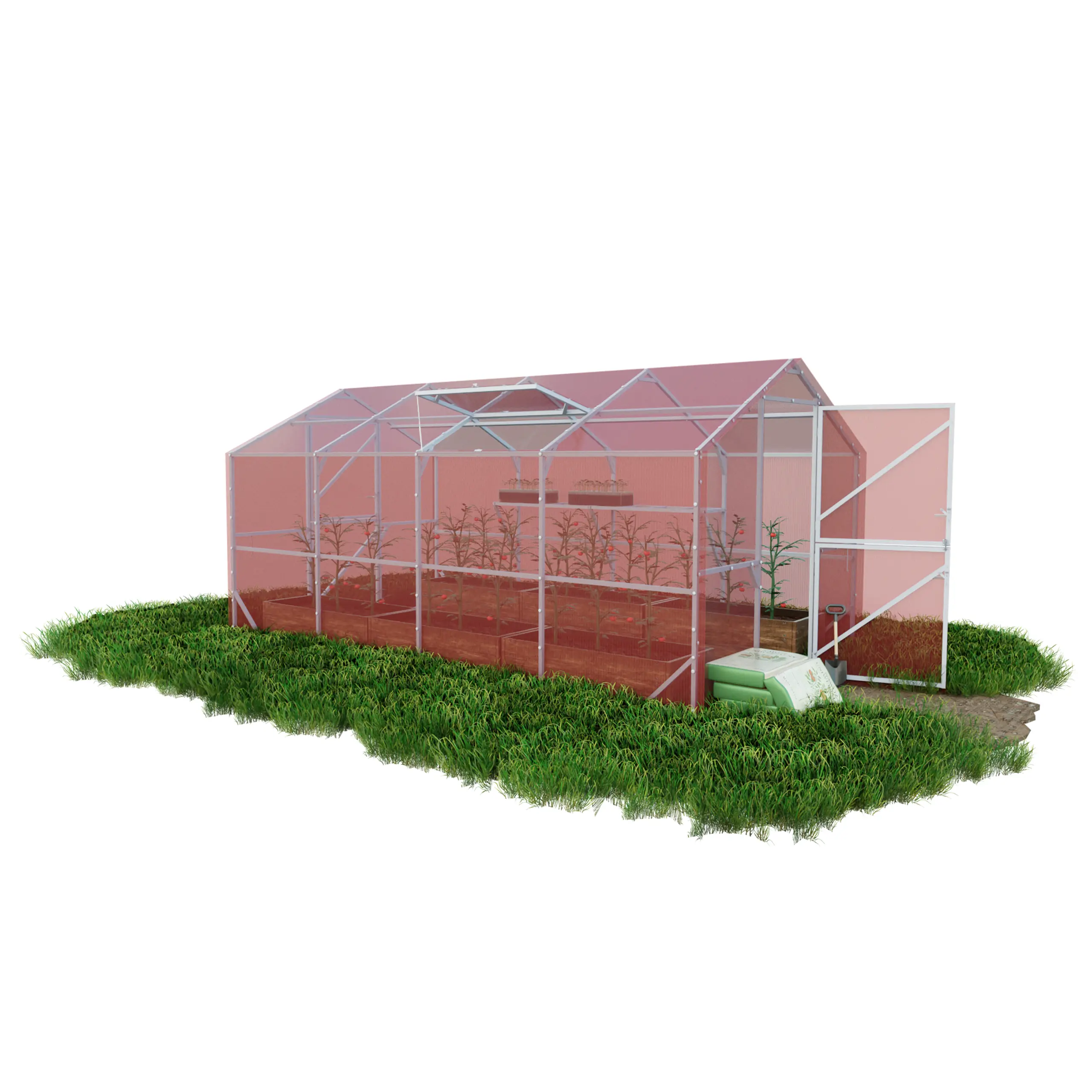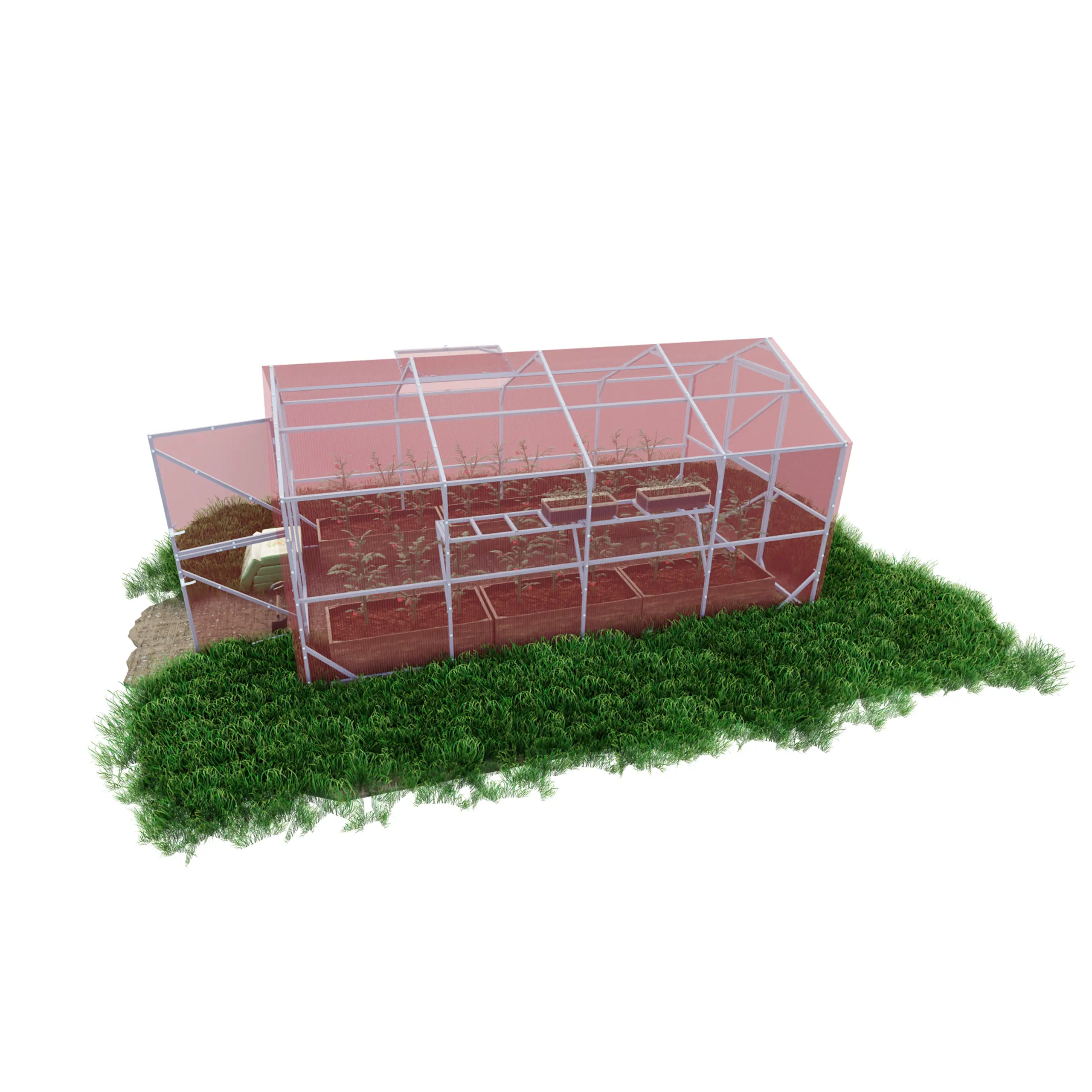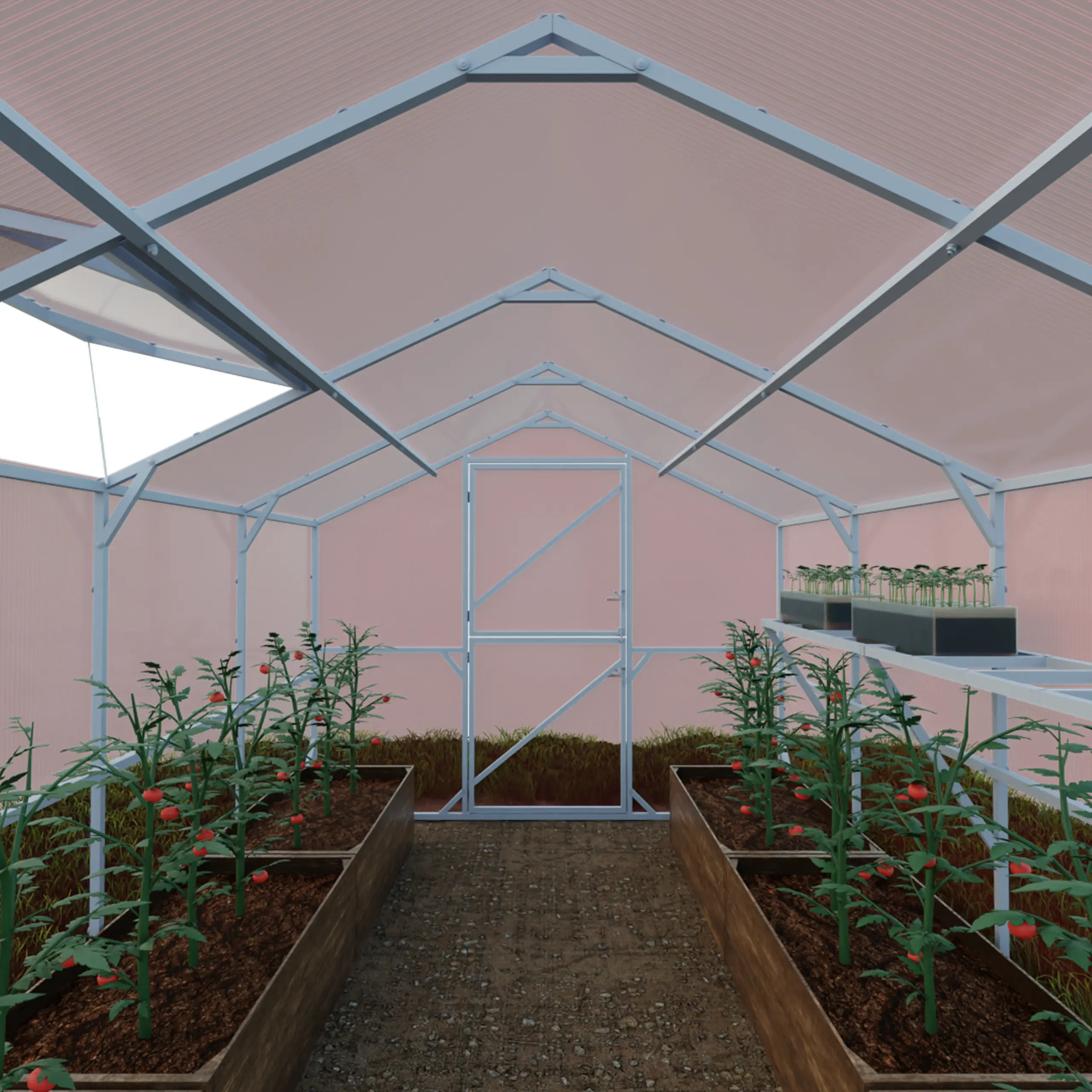 Szklarnia z poliwęglanu DOMEK 2,5×4 m profile 25×25 poliwęglan różowy 4mm