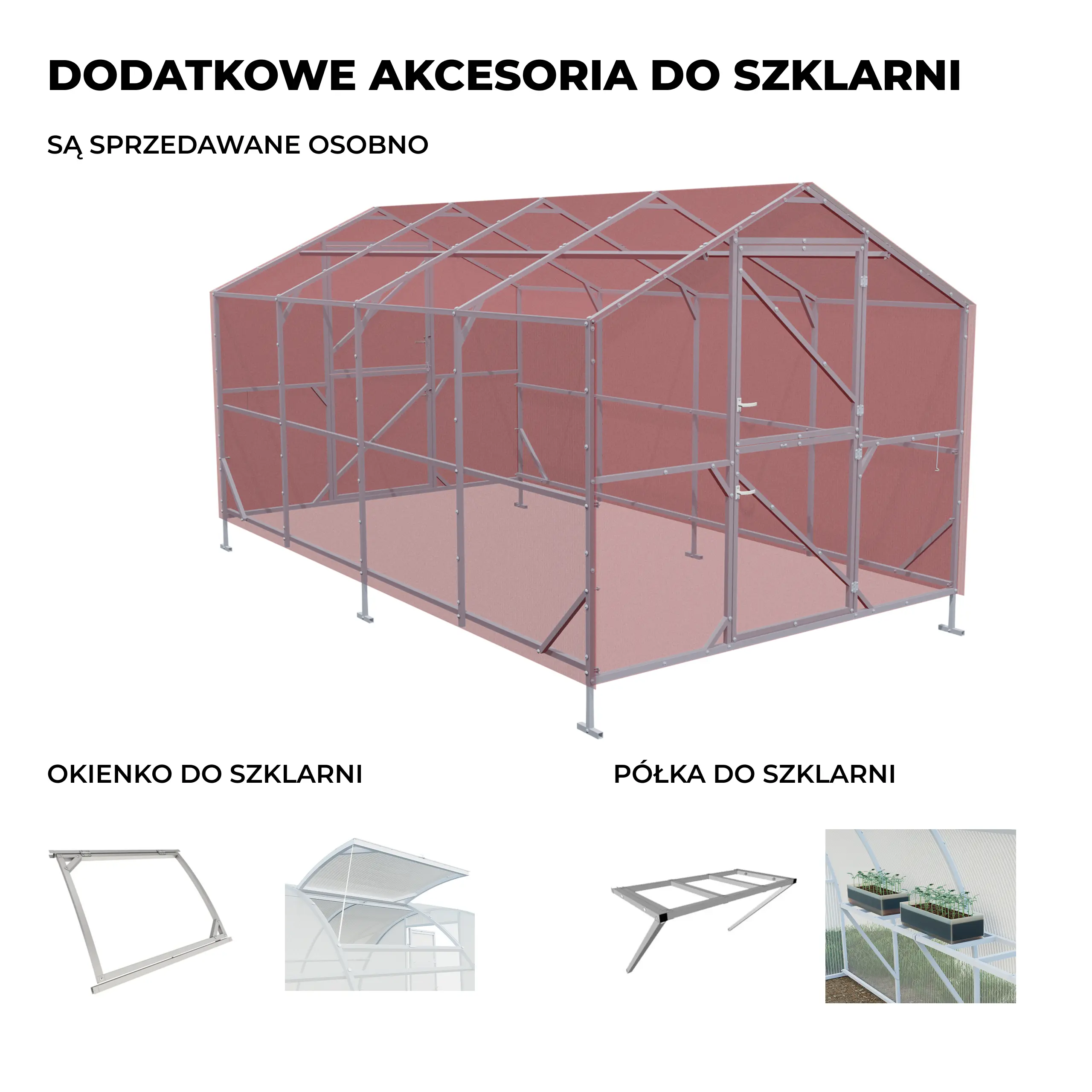 Prezentowane zdjęcia mają charakter poglądowy. Szklarnie dostarczamy w stanie rozmontowanym do samodzielnego montażu (poliwęglan trzeba docinać na fronty).