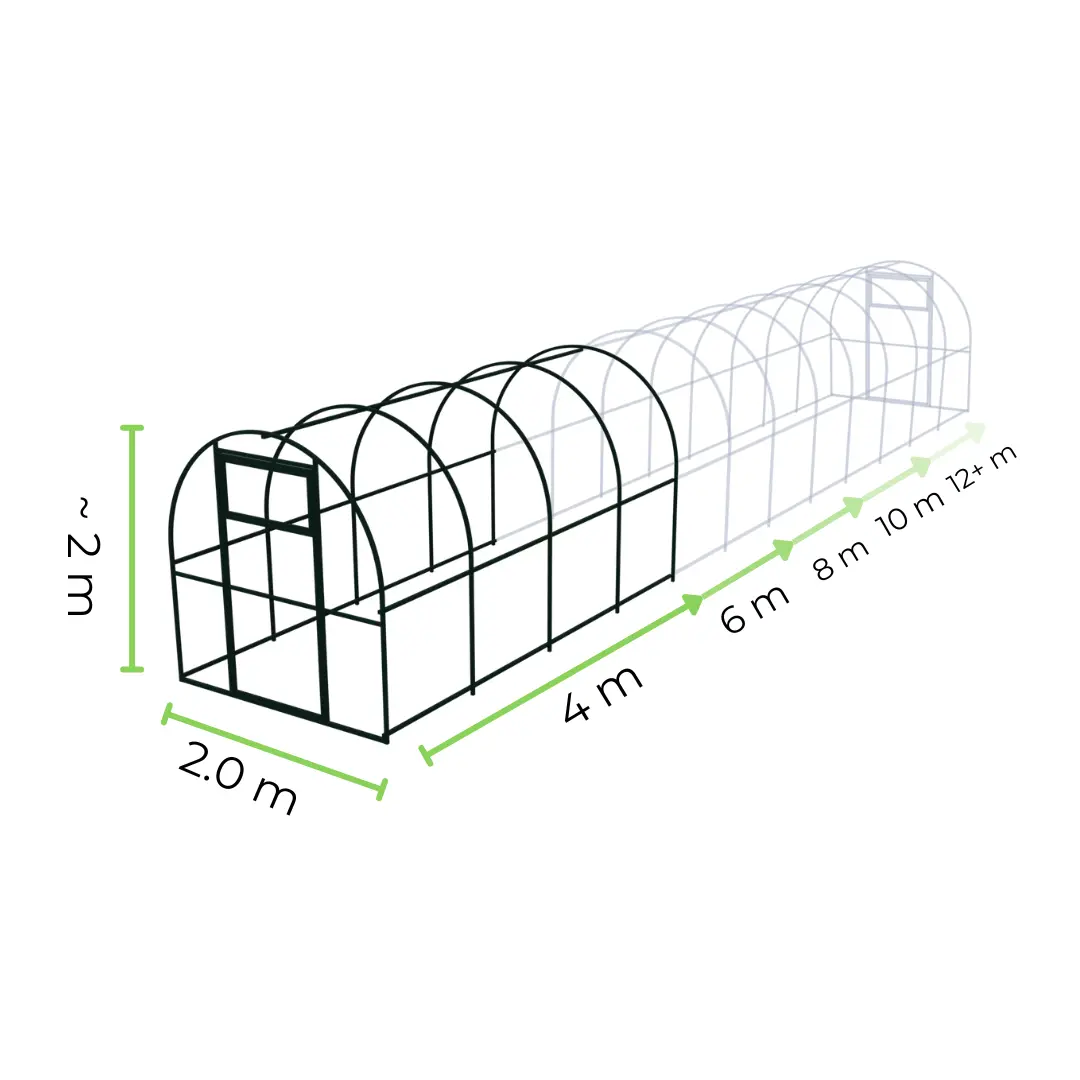 Szklarnia z poliwęglanu Tunel ogrodowy 2×6 m profile 20×20 poliwęglan 6mm