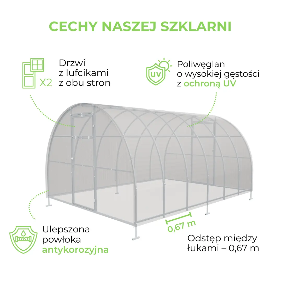 Szklarnia z poliwęglanu Tunel ogrodowy 3×6 m profile 40×20 poliwęglan 6mm